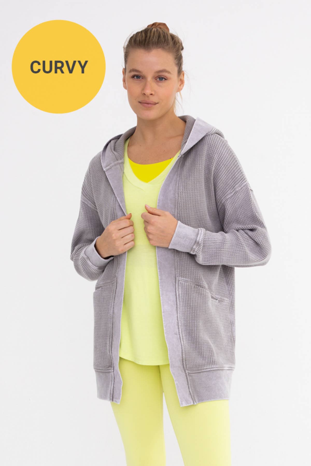 CURVY Waffle Knit Mineral-Washed Cardigan