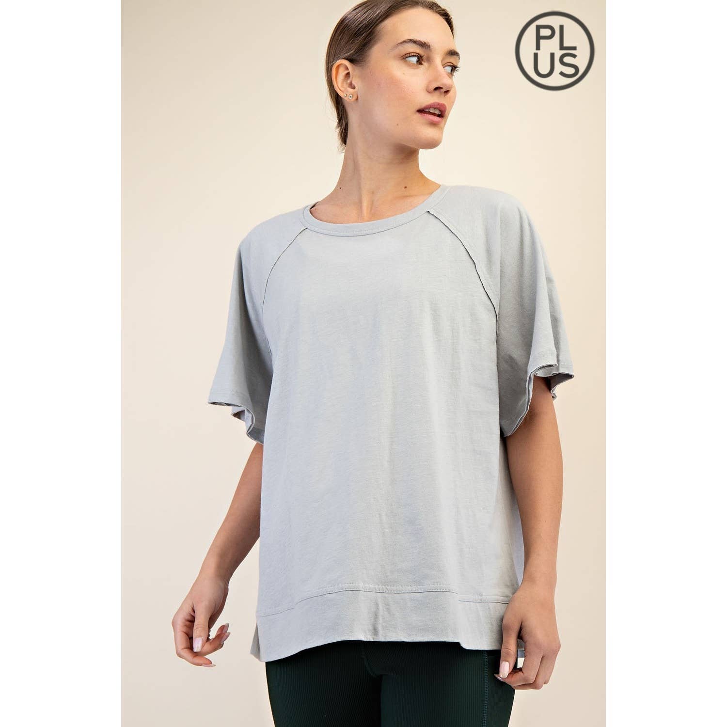 An oversized cotton short sleeve top featuring raw edge designed back details. Soft and breathable, it offers a perfect blend of laid-back comfort and effortless style.